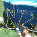 Instructions how to assemble the Pool Pump to The pool: Connect first pipe to the upper connection of the pool (#1 at the picture) and to the lower connection of the pump (#2 at the picture). Connect the second pipe from the upper connection from the pump (#4) to the lower connection of the pool…